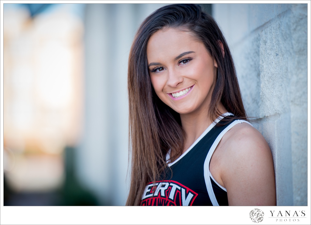 This girl was awesome to photograph! Makes total sense that she’s a cheerleader! She was so upbeat and full of positive energy during our high school senior portrait session, and the pictures really show off her beauty, athleticism, and trendy style! I hadn’t met her prior to our photo shoot, but as soon as she walked into the coffee shop to meet me, I knew that our session would be nothing but smooth sailing. We walked around Frisco Square, stopping at different areas that had cool scenic backdrops. Since she is a cheerleader (who actually made captain for next year’s high school cheerleading squad – way to go girl!!), I couldn’t resist asking her to do some cool tricks (which you can check out in the photos). We found an open field, and BAM, backflips on the fly!