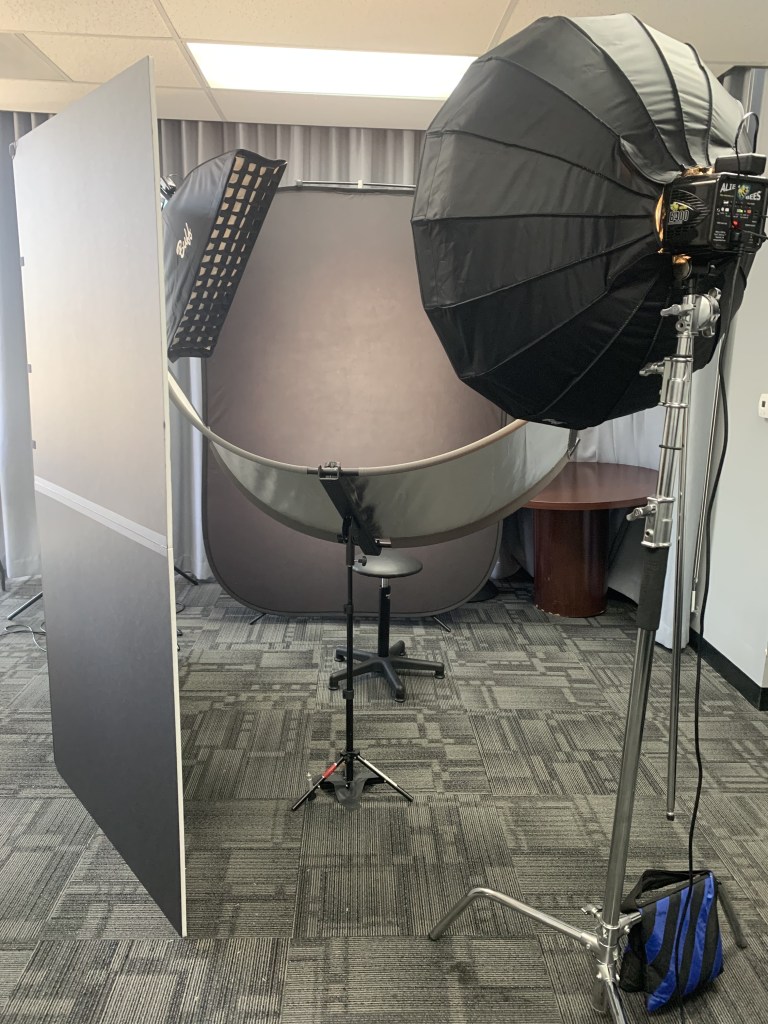 We transformed the firm’s conference room into our shooting space, where I set up a 2-light system with 2 bounces. Light came from both the right side and from behind the subject on the left, providing a balanced yet dynamic look. I used a Manfrotto canvas backdrop for a professional finish, along with an eyelighter curved reflector to bring out flattering highlights and a V-flat bounce to soften shadows. This setup created a polished, timeless look that fit perfectly with the firm’s professional image.